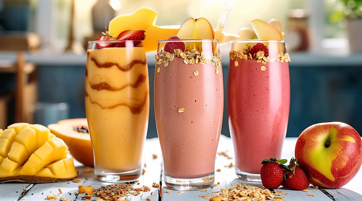 Smoothies sind erfrischende Mixgetränke, die nicht nur aus einer Vielzahl von Früchten, sondern auch aus verschiedenen anderen Zutaten bestehen können. Der Begriff leitet sich vom englischen Adjektiv “smooth” ab, was für “glatt”, “geschmeidig” oder “weich” steht. Neben Früchten können Smoothies auch Gemüse, Kräuter oder Milchprodukte enthalten.